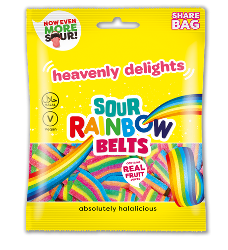 In Stock (8 Units)£3.99 ex. VAT£7.99 ex. VATUnit price /Out Of StockHeavenly Delights Sour Rainbow Belts 140g Share Bag - 12 Count