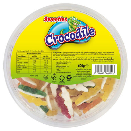 In Stock (159 Units)£13.99 ex. VATUnit price /Out Of StockSweeties Halal Gummy Crocodile Tub 600g - 4 Count