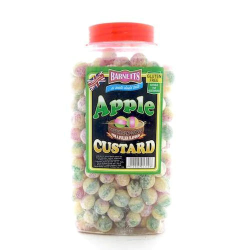 Barnetts Apple & Custard.These are packed in a 3kg jar,these are a hand made hard boiled sweets.That come unwrapped with a great Apple and custard is another wonderful creation from Barnetts that is jammed full with flavour.The apple and custard combined has been a real success and continues to be popular within the Barnetts range.These are handcrafted and are copper pan cooked for a fuller flavour.These sweets are gulten free and are suitable for vegetarians.Please see our larger range of Barnetts products that are now in stock.These Barnetts Apple & Custard are available wholesale and can be brought at Appleton Sweets::::
