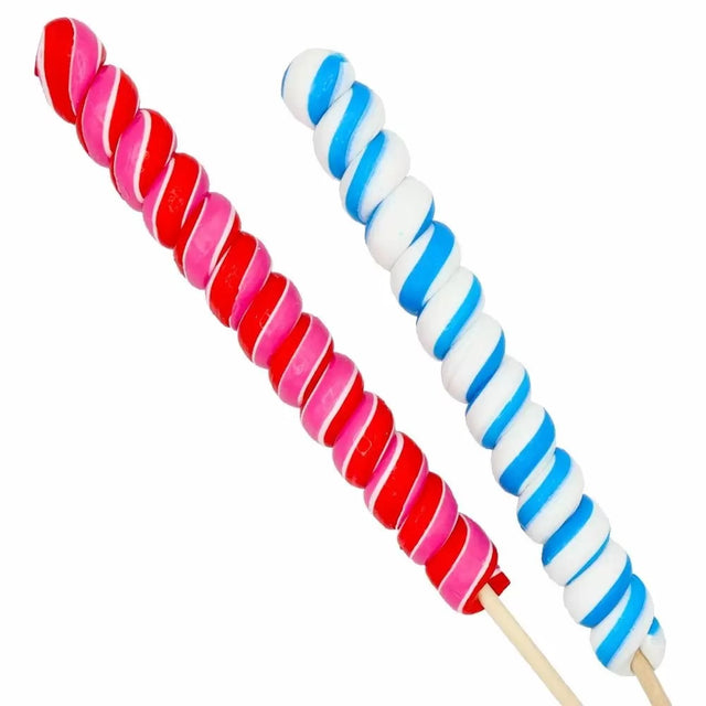 Twist pops are bubblegum and strawberry flavoured lollies that come in a display case.