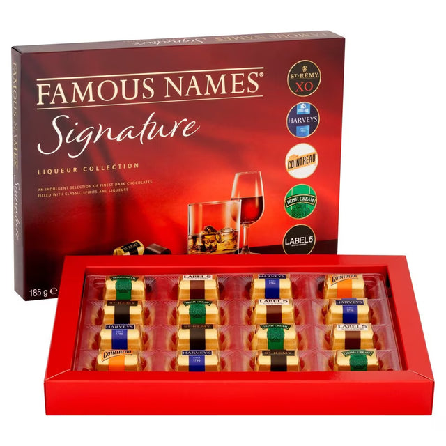 Made to our unique recipe, rich dark chocolate filled with some of the world's most famous liqueurs and spirits including St-Remy XO, Harvey's Bristol Cream, Label 5 and Cointreau.