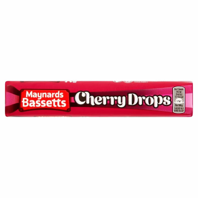 Maynards Bassetts Cherry Drops are smooth and fruity, cherry flavoured hard boiled sweets that have become a true confectionery classic. Whether you're trying them for the first time or reliving childhood sweetshop memories, they're sure to be loved by kids and adults alike. This handy roll pack is ideal for popping in your pocket for a burst of fruity flavour when on the go.