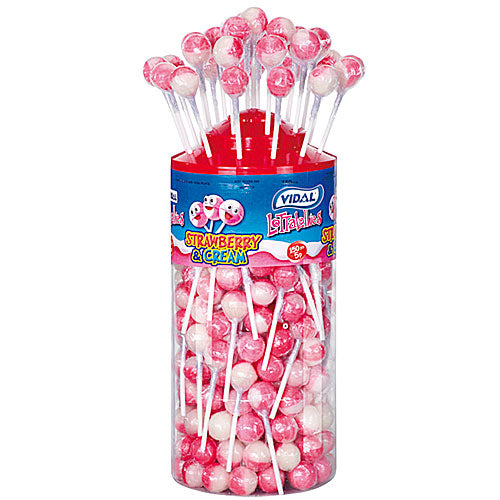Vidal Straw and Cream Lollies are a funky lolly pop made by Vidal.They comein a tasty strawberry and cream flavour.They come pack in 150 count and comes in a tub.Please see our larger range of Vidal products that are now in stock.These Vidal Strawberry and Cream Lollies are now available wholesale and can be brought at Appleton Sweets::::