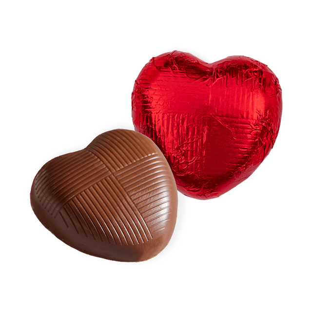 Red wrapped foiled milk chocolate hearts are a delicious box of chocolates, made in the UK by Whitakers. These come in a wholesale case with 1kg red chocolate foiled hearts boxes.